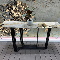 Natural Stone Marble White and Yellow Coffee Table Metal Leg Interior Furniture Luxury Stone Tea Table Living Room Furniture