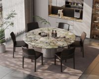 โต๊ะรับประทานอาหารหินอ่อนสีเบจหินอ่อนธรรมชาติสไตล์หรูหราโต๊ะด้านข้างเฟอร์นิเจอร์โต๊ะหินหรูหราโต๊ะน้ำชาวิลล่าอพาร์ทเม้นต์